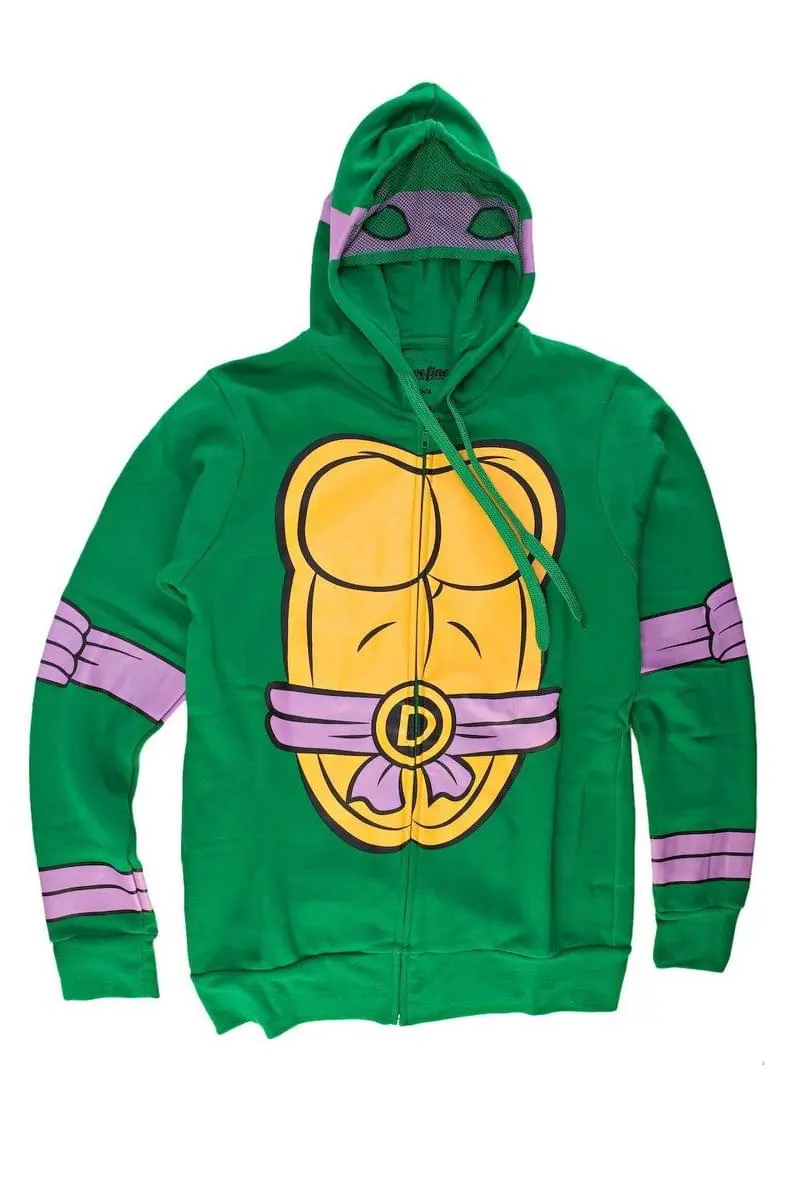 Looking TMNT cool has never been so easy. This I Am Donatello Teenage Mutant Ninja Turtles Zip Zip Up Hoodie functions as a costume – but it’s so awesome you can wear it any day. Cowabunga, dude! Show ’em true heroes wear shells in this sharp hoodie.