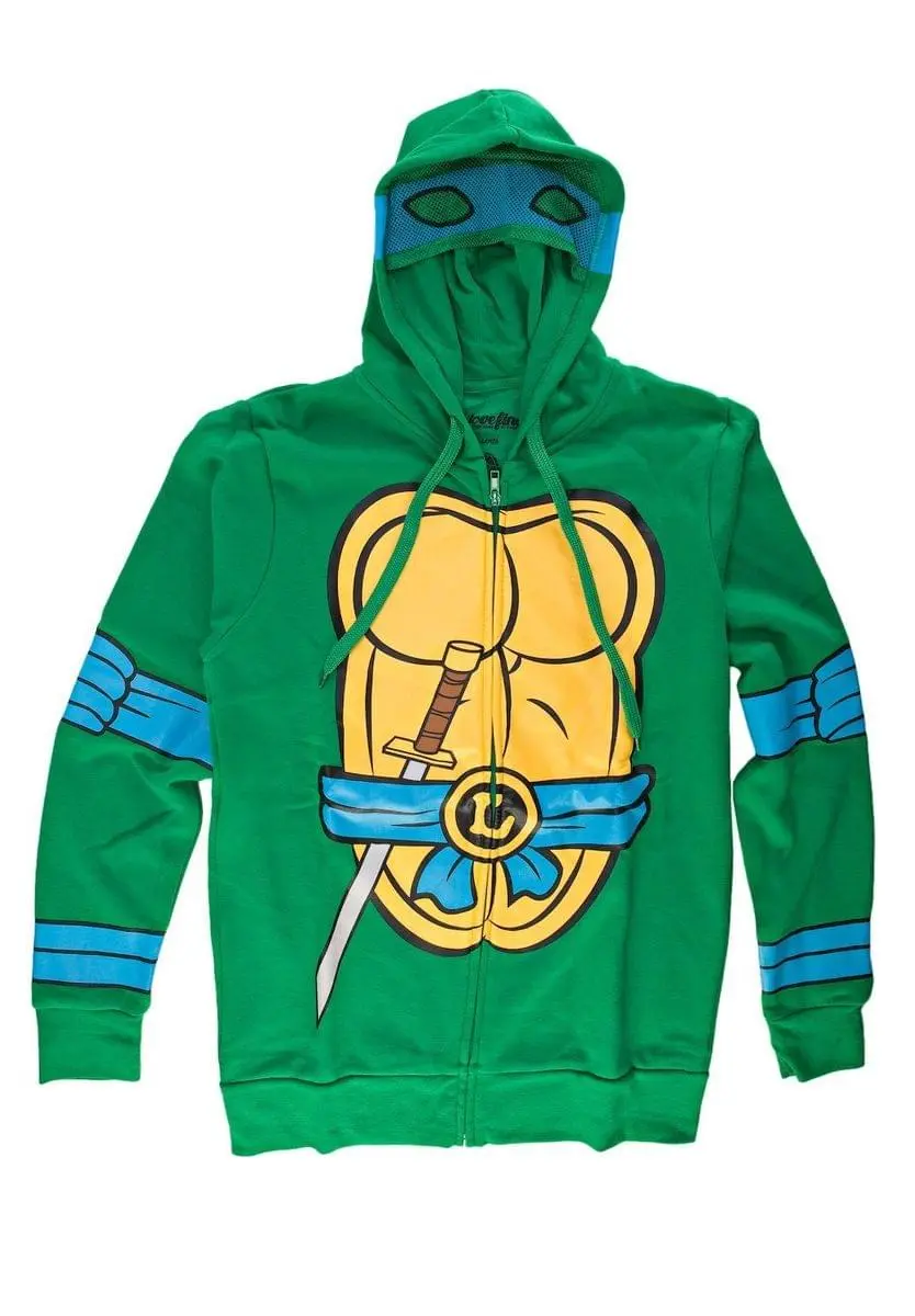 Looking TMNT cool has never been so easy. This I Am Leonardo Teenage Mutant Ninja Turtles Zip Zip Up Hoodie functions as a costume – but it’s so awesome you can wear it any day. Cowabunga, dude! Show ’em true heroes wear shells in this sharp hoodie.